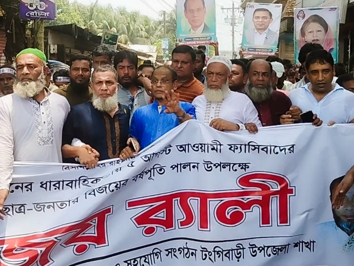 টঙ্গিবাড়ীতে ৫ই আগস্ট খুনি হাসিনার পতনের বর্ষপূর্তি বিজয় মিছিল