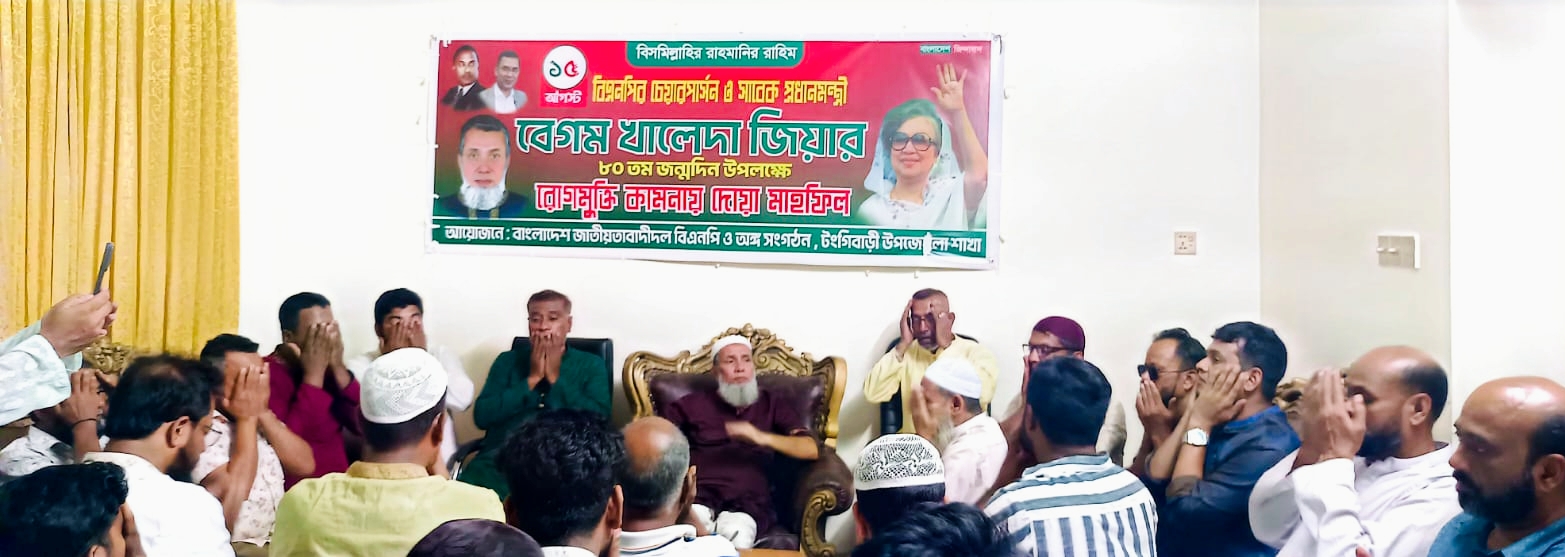 বাংলাদেশ জাতীয়তাবাদী দল টঙ্গীবাড়ী উপজেলা শাখা বিএনপি ও অঙ্গ সহযোগী সংগঠনের উদ্যোগে ১৫ই আগস্ট শুক্রবার বিএনপি'র চেয়ারপারসন এবং সাবেক প্রধানমন্ত্রী বেগম খালেদা জিয়ার ৮০ তম জন্মদিনে উপলক্ষে ও রোগমুক্তি কামনায় দোয়া মাহফিল। এই সময় উপস্থিত ছিলেন :টঙ্গিবাড়ী উপজেলা বিএনপির সভাপতি আলি আজগর রিপন মল্লিক, আক্তার হোসেন লাকুরিয়া সহ-সভাপতি টঙ্গীবাড়ী উপজেলা বিএনপি। মোঃ হান্নান মল্লিক সাধারণ সম্পাদক সোনারং টঙ্গীবাড়ি ইউনিয়ন বিএনপি, মারুফ হোসেন সেন্টু, সদস্য সচিব টঙ্গীবাড়ী উপজেলা স্বেচ্ছাসেবক দল, আব্দুর রহিম বেপারী প্রচার সম্পাদক টঙ্গীবাড়ি উপজেলা বিএনপি, মাহবুব ইসলাম রন্টি দপ্তর সম্পাদক টঙ্গীরবাড়ি উপজেলা বিএনপি, আব্দুল কাদের শেখ তথ্য ও গবেষণা বিষয় সম্পাদক টঙ্গিবাড়ী উপজেলা বিএনপি, মাহবুব মল্লিক সাংগঠনিক সম্পাদক মুন্সিগঞ্জ জেলা ছাত্রদল, আব্দুল রহিম দেওয়ান, দপ্তর সম্পাদক যসলং ইউনিয়ন বিএনপি, মফিজুল ইসলাম সাগর, যুগ্ম-আব্বায়ক টঙ্গীবাড়ি উপজেলা যুবদল। মোহাম্মদ সাইফুল শিকদার,যুগ্ন আহ্বায়ক টঙ্গীবাড়ী উপজেলা যুবদল। মোঃ নুরুল হক মিন্টু সদস্য টঙ্গীবাড়ী উপজেলা যুবদল, আলমগীর মৃধা সদস্য টঙ্গীবাড়ী উপজেলা যুবদল। তানভীর মল্লিক, সাবেক আহ্বায়ক বিক্রমপুর টঙ্গীবাড়ি ডিগ্রী কলেজ বিএনপি মোঃ সাখাওয়াত হোসেন সাংগঠনিক সম্পাদক টঙ্গীবাড়ী উপজেলা কৃষক দল মোহাম্মদ জাহাঙ্গীর শেখ আহবায়ক টঙ্গীবাড়ী উপজেলা তাঁতি দল । আরো উপস্থিত ছিলেন বিভিন্ন ইউনিয়নের বিএনপির অঙ্গ সহযোগী সংগঠনের নেতৃবৃন্দ।